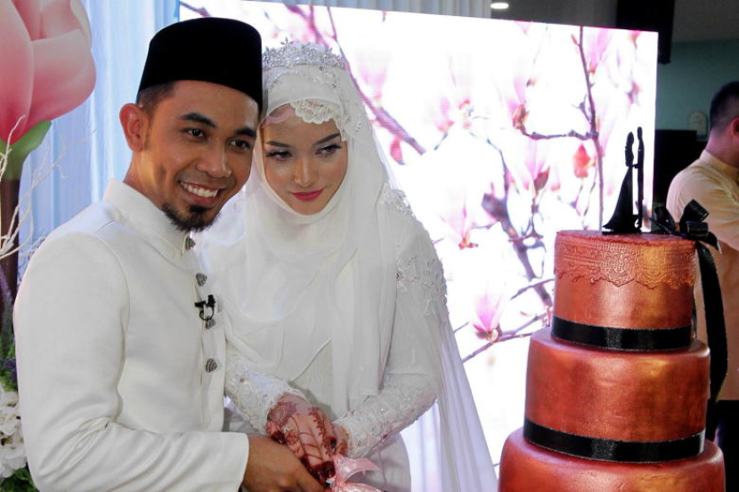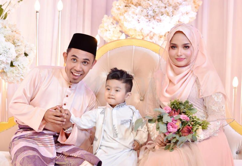 Hafiz tampak segak berbaju melayu dan joy turut mengenakan busana.